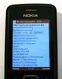 PdaStart.de verzichtet auf unnötige technische Spielereien, ist deshalb sehr bandbreitenschonend und kann auch auf kleinen Handy-Displays angezeigt werden.